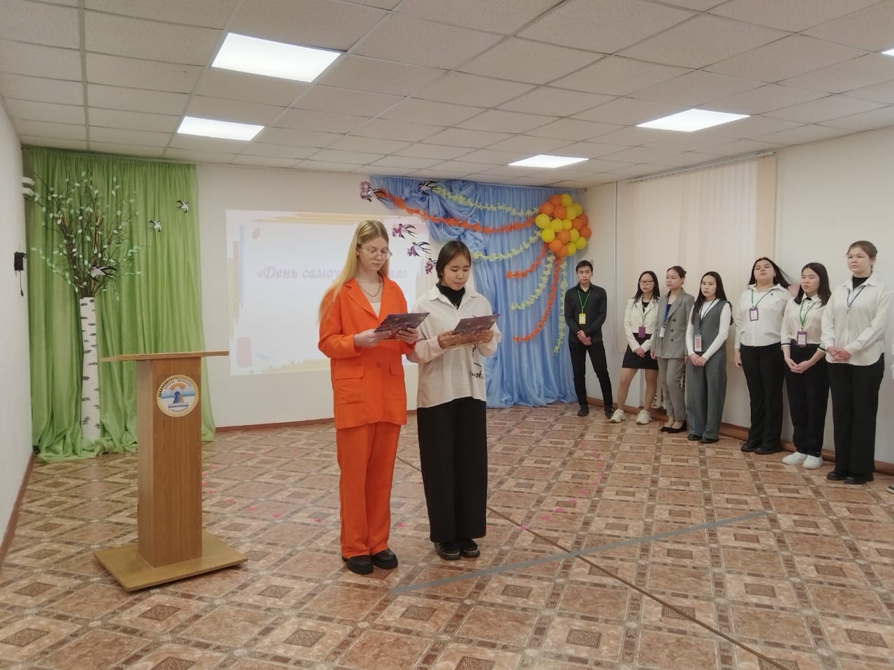 После уроков перед праздничным концертом временная администрация школы представила отчет о проведении Дня Самоуправления.