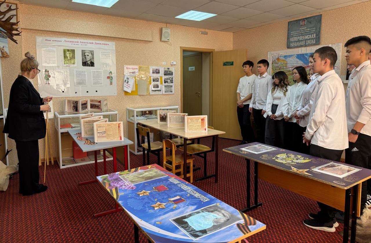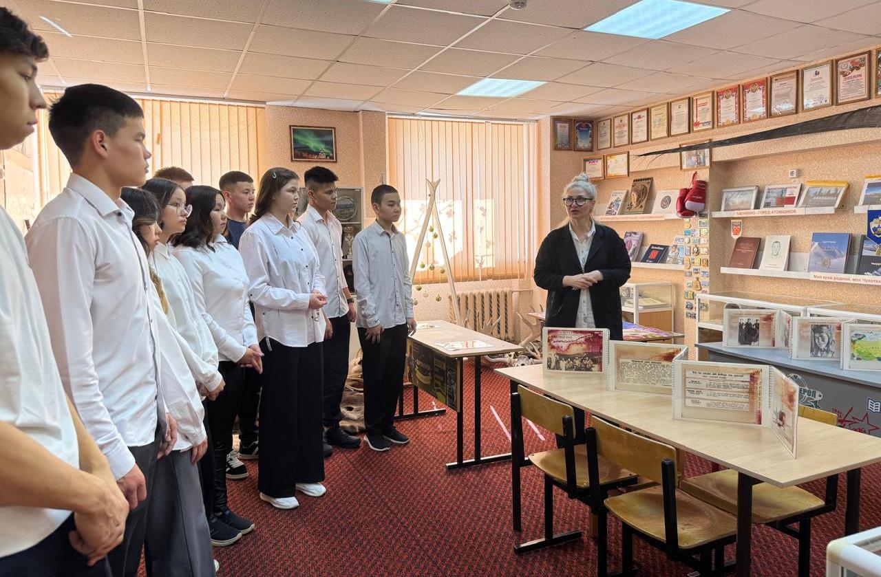 22 апреля обучающиеся 10-11 классов совершили «Путешествие по Билибинскому району» в рамках проведения Регионального патриотического урока «Чукотка: 1941-1945». Старшеклассники познакомились с уроком информационно-просветительского характера на основе готового видеоурока краеведения, созданного педагогом-участником III Регионального конкурса видеоуроков краеведения «Какомэй» Пиурой А.А. и ставшей победителем в номинации «Чукотка фронту», «Всё для Победы!». Урок посвящён 80-ой годовщине Победы в Великой Отечественной войне и Году защитника Отечества. В ходе урока ребята посетили школьный музей и познакомились с новой выставкой «Чукотка фронту», с людьми, цифрами, фактами о жителях Чукотки и с. Кепервеем внесших неоценимый вклад в Победу. В заключении обучающиеся рассказали о воинском и трудовом подвиге своих предков в годы Великой Отечественной войны, жителей поселков Билибинского района и сегодняшних защитниках Отечества — участниках специальной военной операции.