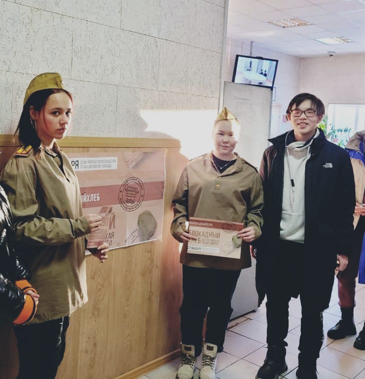 Ежегодно 27 января в нашей стране отмечается День полного освобождения Ленинграда от фашистской блокады. Это День воинской славы России, который был установлен в соответствии с Федеральным законом «О днях воинской славы (победных днях) России» от 13 марта 1995 года. В нашей школе прошла линейка , посвященные этой памятной дате, обучающиеся узнали о жизни ленинградцев во время блокады. Также в этот день волонтерский отряд нашей школы принял участие во Всероссийской акции «Блокадный хлеб» в здании аэровокзала ФКП «Аэропорты Чукотки», акция памяти была призвана напомнить об одной из самых героических и трагических страниц Великой Отечественной войны, о мужестве и стойкости жителей города, переживших беспрецедентную блокаду.