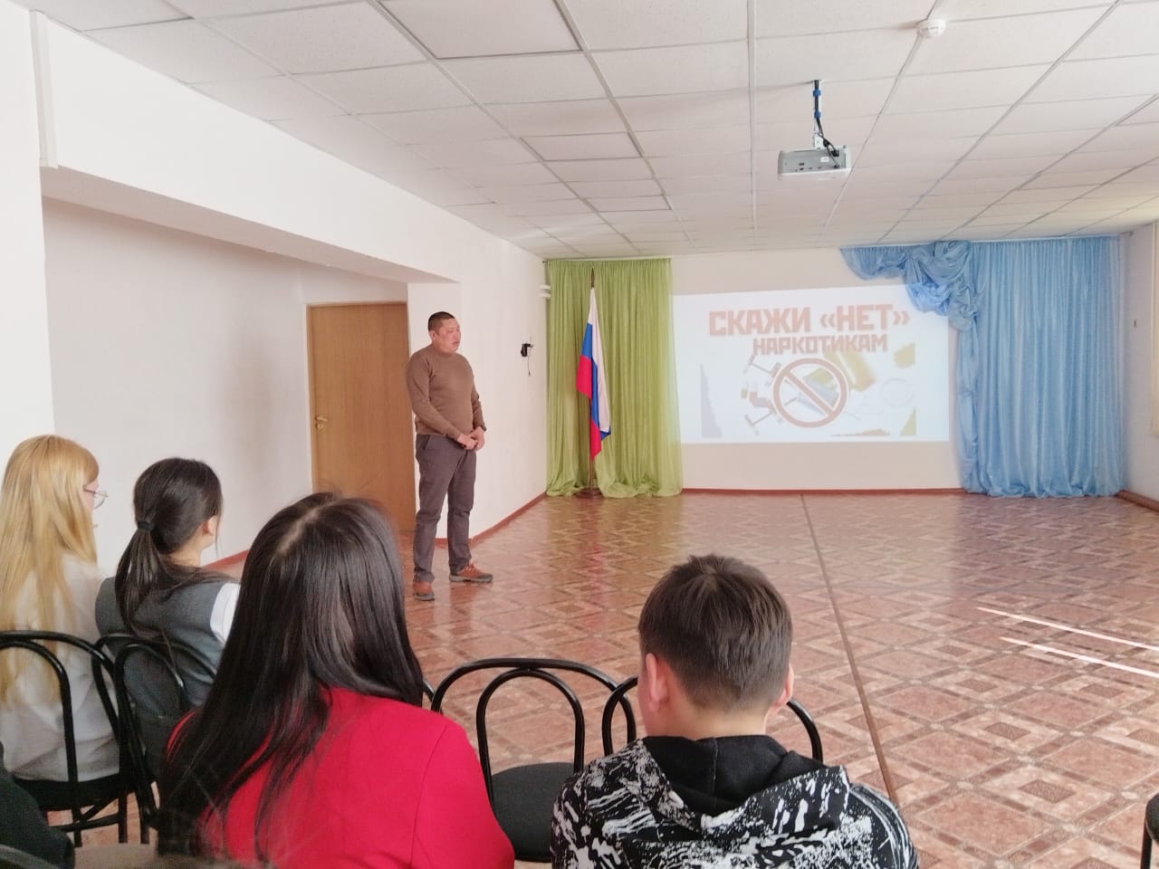 В своем выступлении в доступной для учеников форме сотрудник полиции рассказал информацию по контролю оборотов наркотиков, об административной и уголовной ответственности за хранение, сбыт, распространение и употребление наркотических веществ растительного и синтетического происхождения.