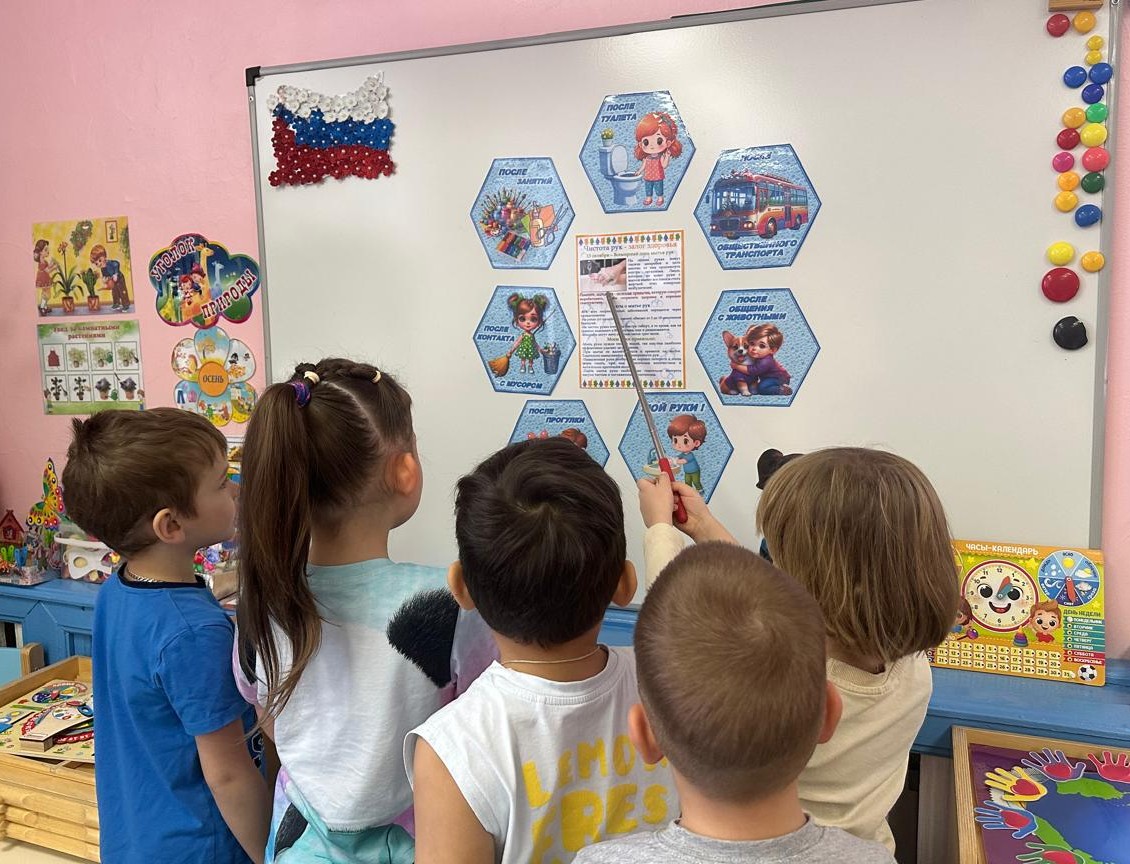 Ежегодно 15 октября проводится Международный День Чистых Рук .Цель проведения такого дня — пропагандировать необходимость частого и правильного мытья рук, поскольку тщательное мытье рук водой с мылом помогает бороться с большим количеством заболеваний. Для дошколят мытье рук — обязательная и неоднократная гигиеническая процедура, которой воспитатели учат детей с самого первого дня поступления в детский сад. В «День чистых руки- залог здоровья!», который был организован в разновозрастной группе детского сада, педагоги через художественное слово, беседу, игры-ситуации формировали осознанное отношение детей к выполнению правил личной гигиены «Что такое микробы и как они могут навредить человеку?», «Почему руки должны быть чистыми?», «Для чего нужно мыть руки?».