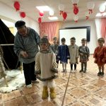 В рамках Декады Чукотки, педагоги и воспитанники детского сада провели показ традиционной одежды народов Крайнего Севера. Одежда коренных народов служила всегда защитой от суровых климатических условий, проверена несколькими десятилетиями и никогда не менялась выкройкой или техникой шитья. С развитием торговли на Чукотке очень стали популярны ткани из ситца, хлопка, льна. Практичные северные народы стали шить камлейки. В отличии от кухлянки или женского комбинезона — кэркэр, в камлейки, сшитые из ткани не забивался снег. А многообразие тканей с яркой расцветкой приносили эстетическую радость народам Крайнего Севера. Теперь этот атрибут стал популярен в сценических костюмах и если подобрать аксессуары в виде ободка, расшитые бисером, то создаётся неповторимое сочетание ансамбля любого национального костюма. Умелое мастерство в создании национальной одежды Папановой Татьяны Александровны и её учеников на уроках труда отлично продемонстрировали воспитанники детского сада.