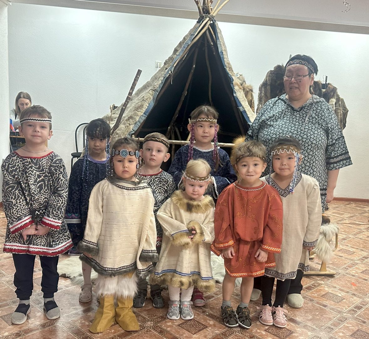 В рамках Декады Чукотки, педагоги и воспитанники детского сада провели показ традиционной одежды народов Крайнего Севера. Одежда коренных народов служила всегда защитой от суровых климатических условий, проверена несколькими десятилетиями и никогда не менялась выкройкой или техникой шитья. С развитием торговли на Чукотке очень стали популярны ткани из ситца, хлопка, льна. Практичные северные народы стали шить камлейки. В отличии от кухлянки или женского комбинезона — кэркэр, в камлейки, сшитые из ткани не забивался снег. А многообразие тканей с яркой расцветкой приносили эстетическую радость народам Крайнего Севера. Теперь этот атрибут стал популярен в сценических костюмах и если подобрать аксессуары в виде ободка, расшитые бисером, то создаётся неповторимое сочетание ансамбля любого национального костюма. Умелое мастерство в создании национальной одежды Папановой Татьяны Александровны и её учеников на уроках труда отлично продемонстрировали воспитанники детского сада.