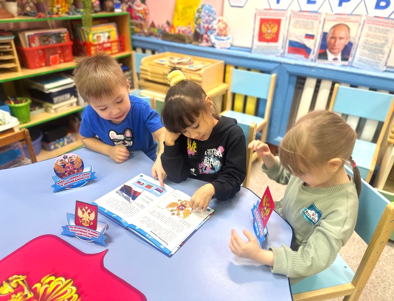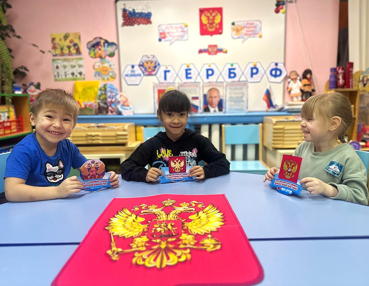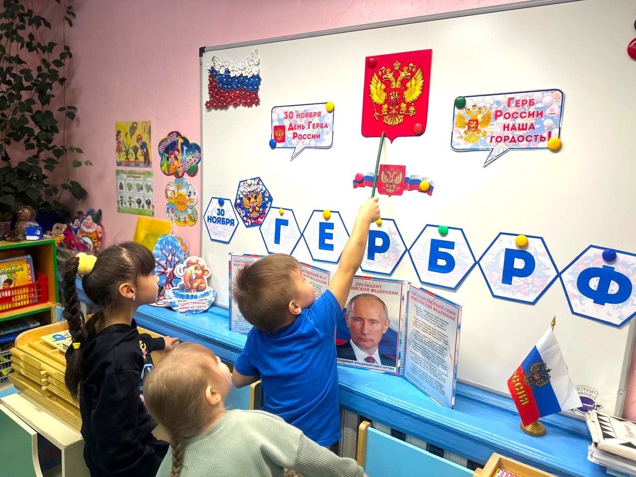 30 ноября отмечается  особенный день — День герба России. В преддверии этого значимого дня дошколята разновозрастной группы, познакомились с символом нашей державы- гербом. Педагоги провели познавательную беседу об истории и символике герба, его значении для страны. Дети узнали о двуглавом орле, скипетре, державе и других элементах герба, что он символизирует, где помещается изображение государственного герба Российской Федерации. Этот день стал ярким и запоминающимся событием для воспитанников детского сада, которое было направлено на формирование у детей любви к Родине, уважение к ее истории и культуре, почтительному отношению к Государственной символике. Патриотическое воспитание дошкольника — одна из важнейших задач современного образования.
