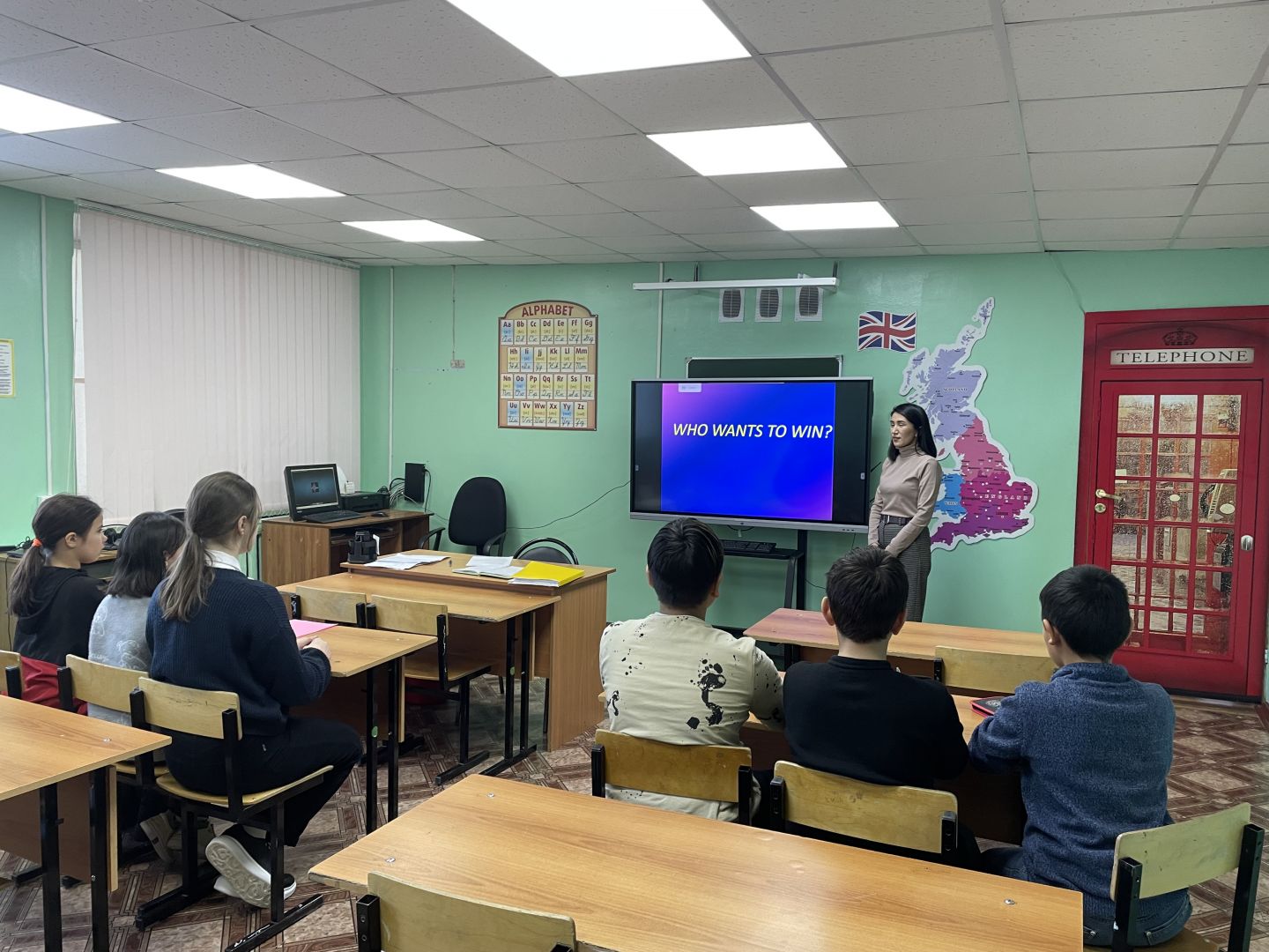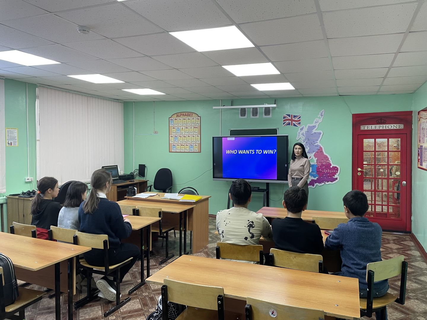 В рамках недели предметов гуманитарного цикла в школе сегодня прошел день иностранных языков. Учитель английского языка провела в 5 классе внеклассное занятие по английскому языку «Who wants to win?» — «Кто хочет выиграть?». Цель мероприятия: активизировать фонетические, лексические и грамматические умения и навыки учащихся, полученные во время учебного процесса, привитие интереса к английскому языку.