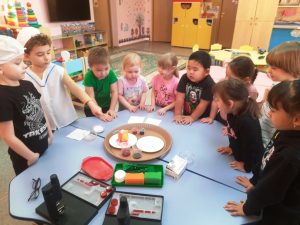 В этот день в разновозрастной  группе детского сада работала исследовательская  лаборатория.  Юные ученые изучали свойства   воды,  воздуха и других явлений окружающего мира, экспериментировали, проводили опыты. Особый  восторг получили дети от экспериментов «Разноцветный вулкан» и «Волшебный шарик». Побывали на виртуальной экскурсии с демонстрацией мультимедийной презентации «Новости российской науки». Ребята узнали  об открытиях человека в мире космоса, транспорта, медицины.  Весь день дети были погружены в фантастический мир опытов и приключений. Исследования увлекали и удивляли  мальчишек и девчонок. День  открытий, прошел в атмосфере творчества, интереса и познавательной активности. Кто знает, может быть именно наши воспитанники станут когда-то известными учеными и сделают сенсационные открытия и прорывы.