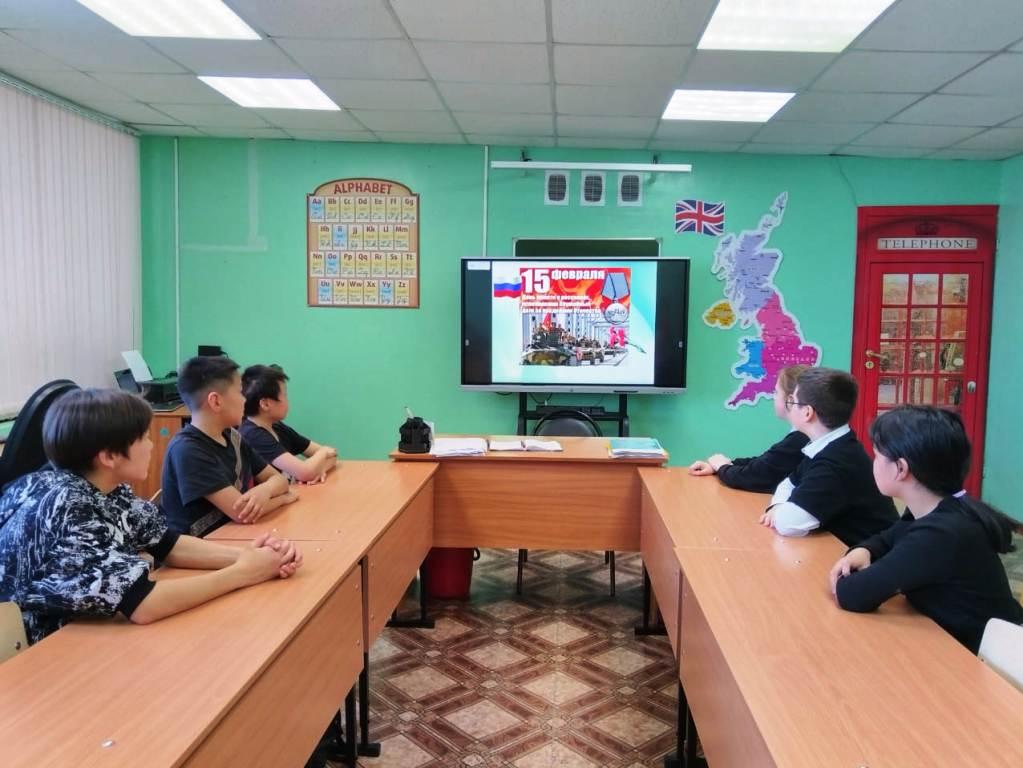 В преддверии Дня памяти воинов-интернационалистов в знак памяти о россиянах, проявивших самоотверженность и преданность Родине, в 5 классе прошел классный час. Дата для проведения «Дня памяти о россиянах, исполнявших служебный долг за пределами Отечества» была выбрана не случайно. Именно в этот день, 15 февраля 1989 года, последняя колонна советских войск покинула территорию Афганистана.