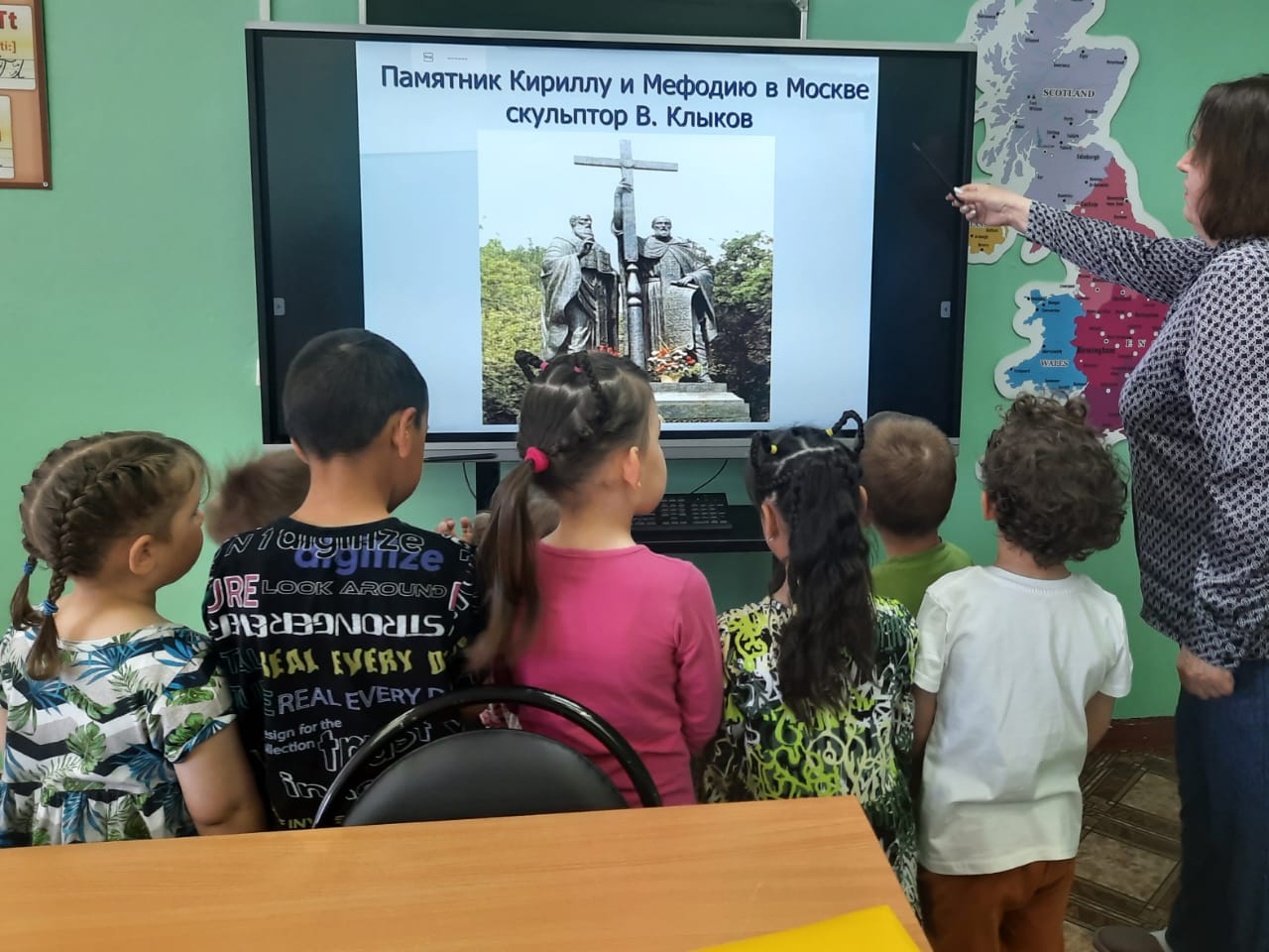 В целях приобщения детей к русской культуре и традициям в детском саду прошло познавательное мероприятие, посвященное Дню славянской письменности и культуры. Педагоги и воспитатели подготовили для воспитанников своей группы увлекательное путешествие в Древнюю Русь, рассказали детям о традициях старины, об истории возникновения славянской письменности, а также познакомили детей с основателями славянской азбуки братьями Кириллом и Мефодием.
