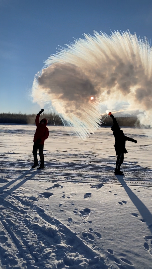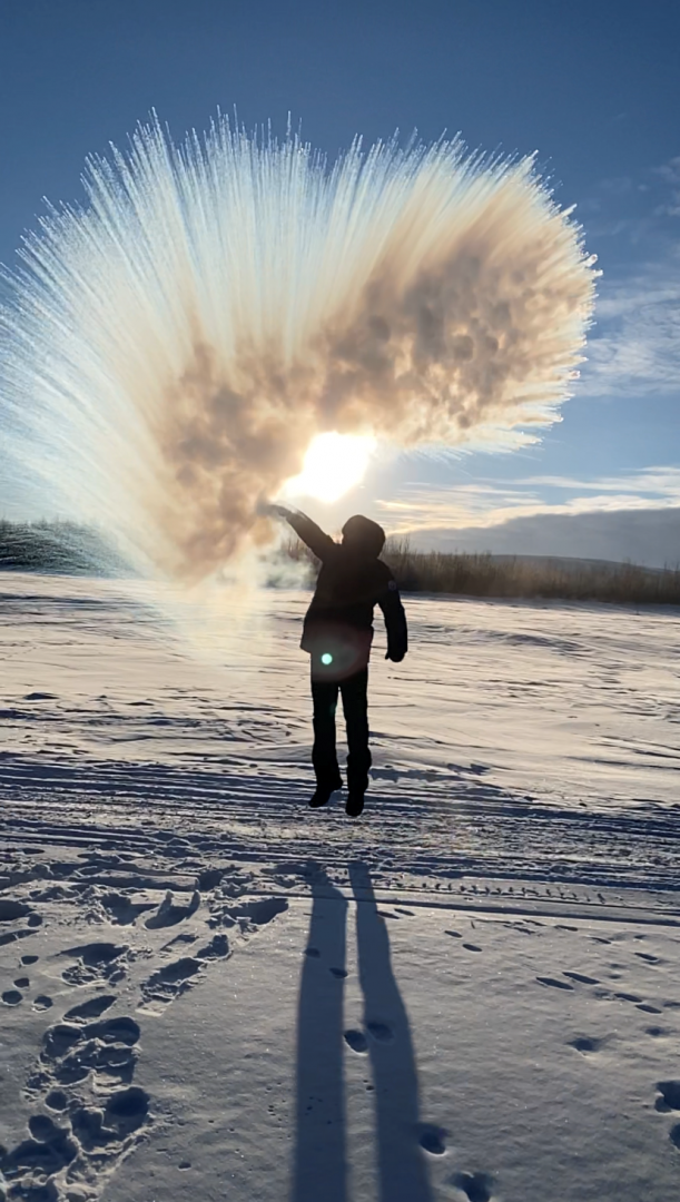 Педагоги ЦО «Точка роста» продолжают проводить интересные уроки по физике на открытом воздухе. Обучающиеся 10-11 классов в морозный день познакомились с Эффектом Мпембы. Ребята воочию увидели то, что при -47 градусах горячая вода действительно замерзает быстрее, чем холодная. И сделали эффектные фотографии.