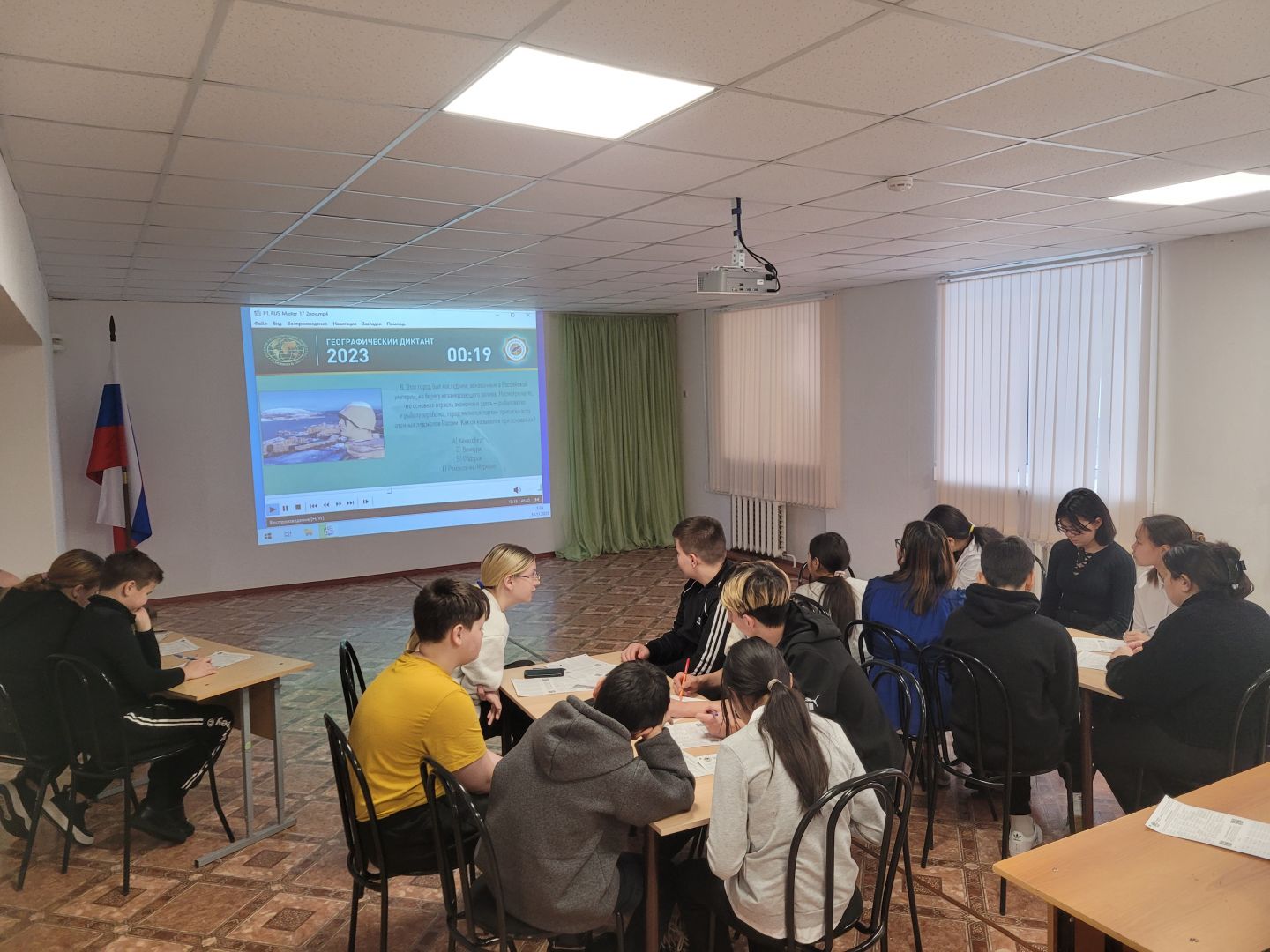 В воскресенье в школе прошла масштабная международная просветительская акция. Акция нацелена на популяризацию географии и смежных наук. Это не сложный экзамен, а увлекательная викторина, посвященная России и ориентированная на людей всех возрастов — «Географический диктант». Участникам было предложено ответить на 40 вопросов. Помимо традиционных вопросов по географии и смежным наукам, в диктанте были вопросы, посвященные теме «Человек и география», поскольку 2023 год объявлен Годом педагога и наставника.