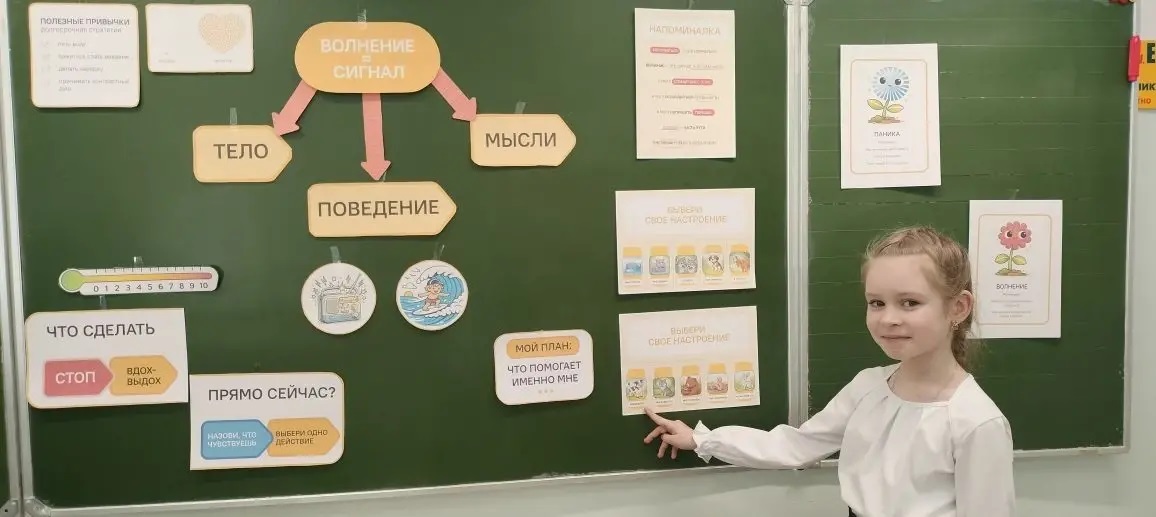 Забота о себе. Обсудили важность режима дня, полноценного сна и физической активности как основы психологической устойчивости. Для младших классов занятие прошло в игровой форме: дети учились распознавать свои эмоции и помогать сказочным героям справляться со страхами. Старшеклассники сфокусировались на подготовке к экзаменам, разобрав алгоритмы поведения в ситуациях повышенного напряжения и способы сохранения высокой работоспособности.