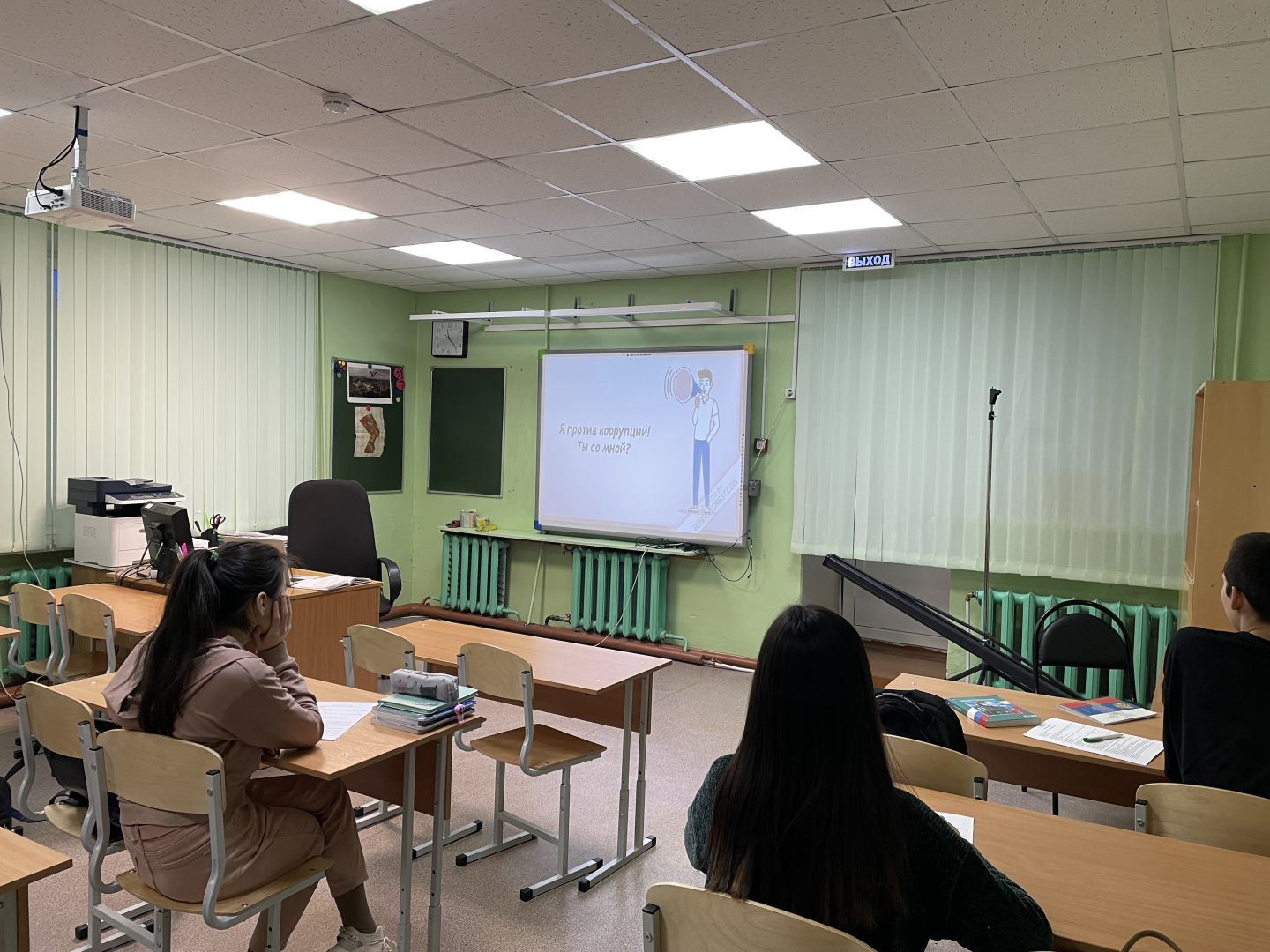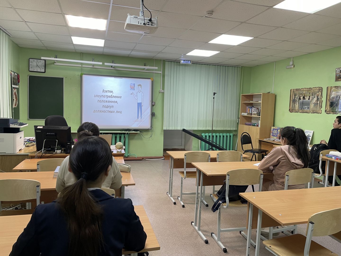 С 13 по 16 декабря в школе проходили мероприятия, посвященные Международному дню борьбы с коррупцией. Тема коррупции актуальна сегодня как никогда. Сама жизнь погружает детей в негатив проблемы, показывает, что к ней может быть причастен любой гражданин общества. Для информативности обучающихся в школе оборудован стенд «Коррупции – НЕТ!», на котором периодически меняются темы: «Коррупция. Что это значит?», «Что смогу сделать я?», «Почему это касается меня?», «Причины роста коррупции», «Факты про коррупцию», «Ответственность за коррупцию». На уроках обществознания изучалась проблема коррупции. Учитель обществознания провела интересные беседы, в которых учащиеся приняли активное участие. Классные руководители 5-11 классов провели тематические классные часы, посвященные проблемам коррупции в государстве: «Факты. Из истории коррупции», «Что такое коррупция. Имеет ли она место в селе», «Где и почему процветает коррупция», «Коррупция в истории российского государства». Все ребята и педагоги получили буклеты на антикоррупционную тематику. А так же обучающимся были показаны информационные ролики «Что такое коррупция», «Коррупция в образовании» и «Коррупция в медицине». Старшеклассники ответили на вопросы антикоррупционного диктанта. Все обучающиеся принимали активное участие во всех мероприятиях и сделали вывод, что коррупция, приносит огромный вред всему обществу и государству.
