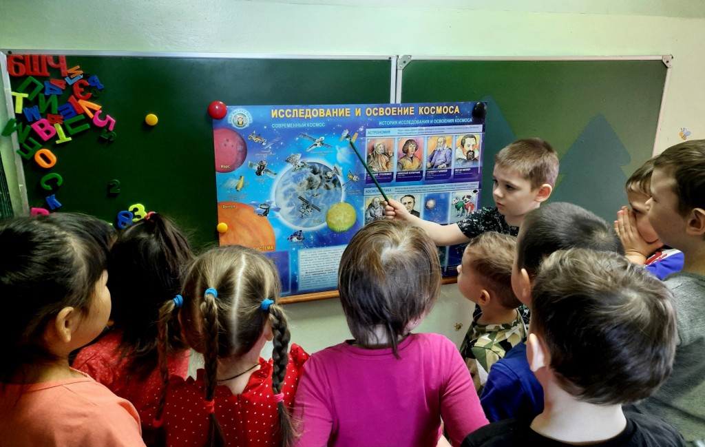 В разновозрастной группе детского сада прошла тематическая неделя о космосе. В течение недели проходили интересные мероприятия, беседы, направленные на развитие познавательных и творческих способностей дошколят, которые осуществлялись через различные виды детской деятельности — чтение рассказов о космосе, планетах, космонавтах. Дети познакомились с историей освоения космоса, о первом полете человека в космос. Узнали много новых профессий, связанных с космонавтикой, закрепили уже имеющиеся знания о космосе. С помощью игр-ситуаций продолжили знакомиться с загадочным и таинственным миром космоса и Солнечной системы, а затем отправились в полет к неизведанным звездам и тайнам космоса. Когда-то космос казался недосягаемым, и вот уже через какие-то десятки лет туда сможет отправиться любой желающий. Может, это будут наши дети?