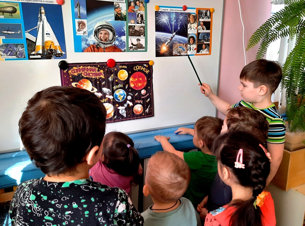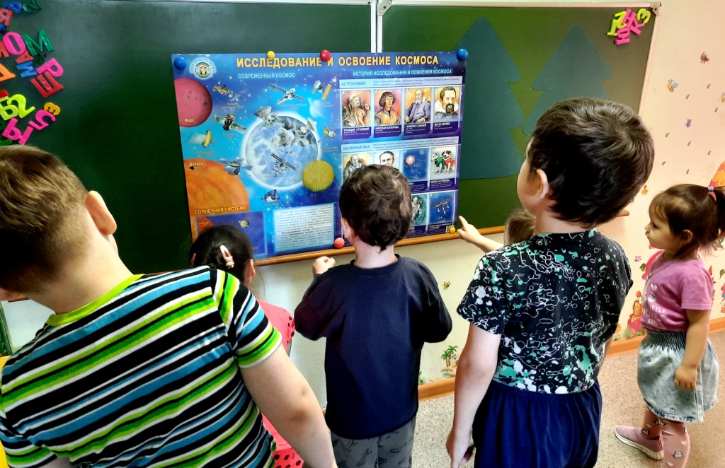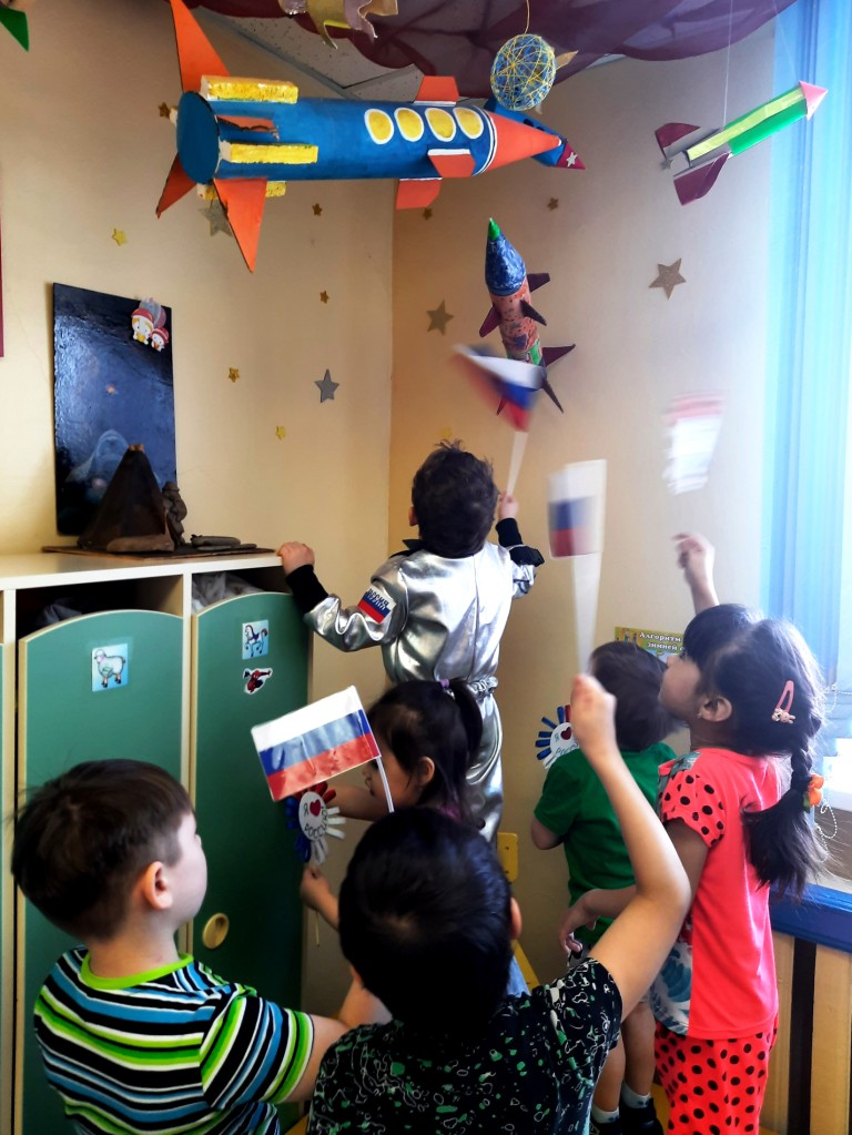 Космическая тема всегда была интересна для детей. Сильные и смелые люди — космонавты, загадочность планет, возможность жизни других цивилизаций на этих планетах волнуют и увлекают подрастающее поколение. Как заинтересовать ребенка, как помочь ему узнавать новую, интересную информацию о космосе? С этой целью дошколята разновозрастной группы детского сада отправились в космическое путешествие. продолжили знакомиться с загадочным и таинственным миром космоса и Солнечной системы, а затем отправились в полет к неизведанным звездам и тайнам космоса. Разговор о космосе, звездах, планетах и, конечно, о космонавтах стали захватывающим для детей. Все ребята получили большое удовольствие и массу впечатлений.