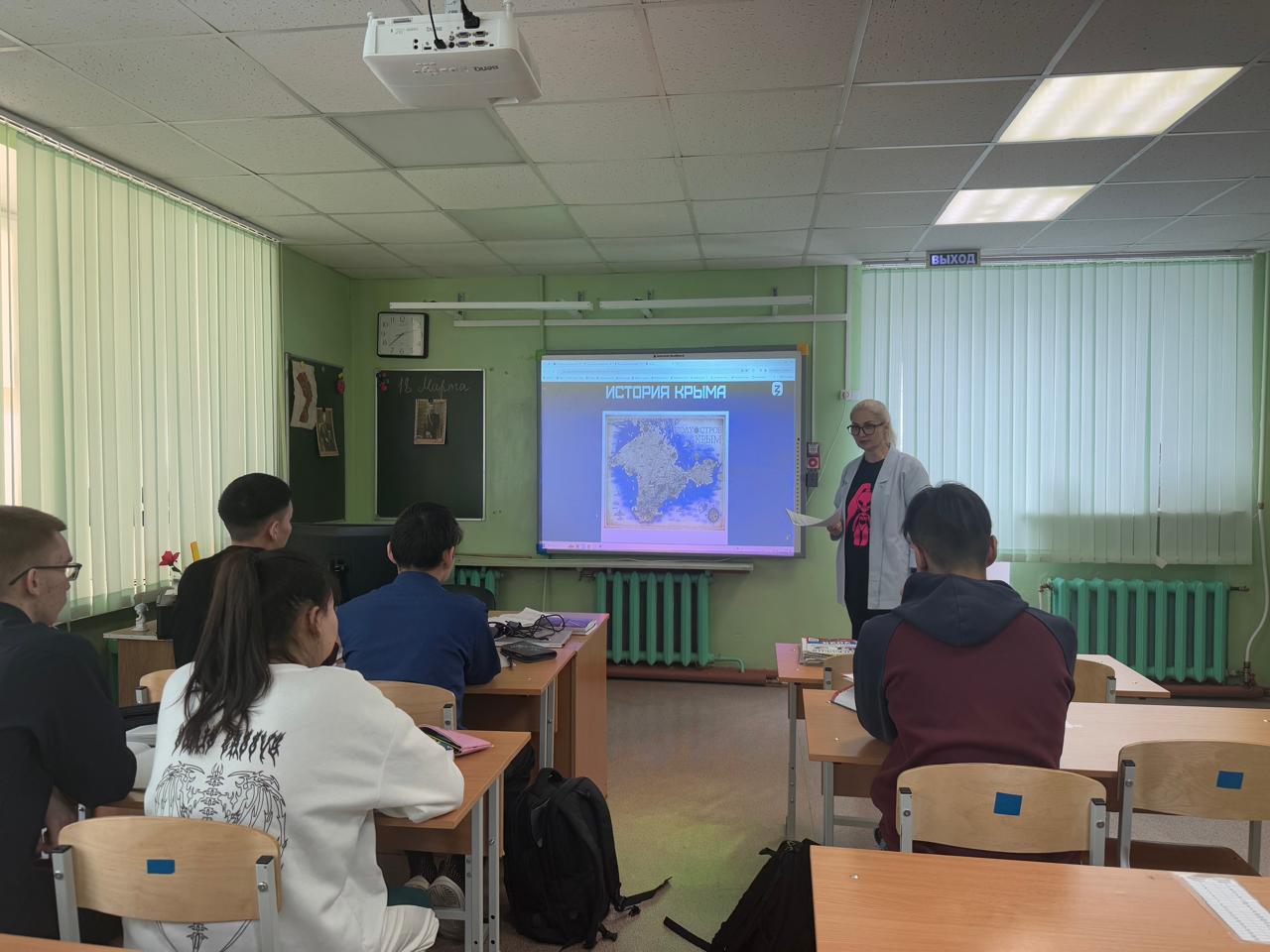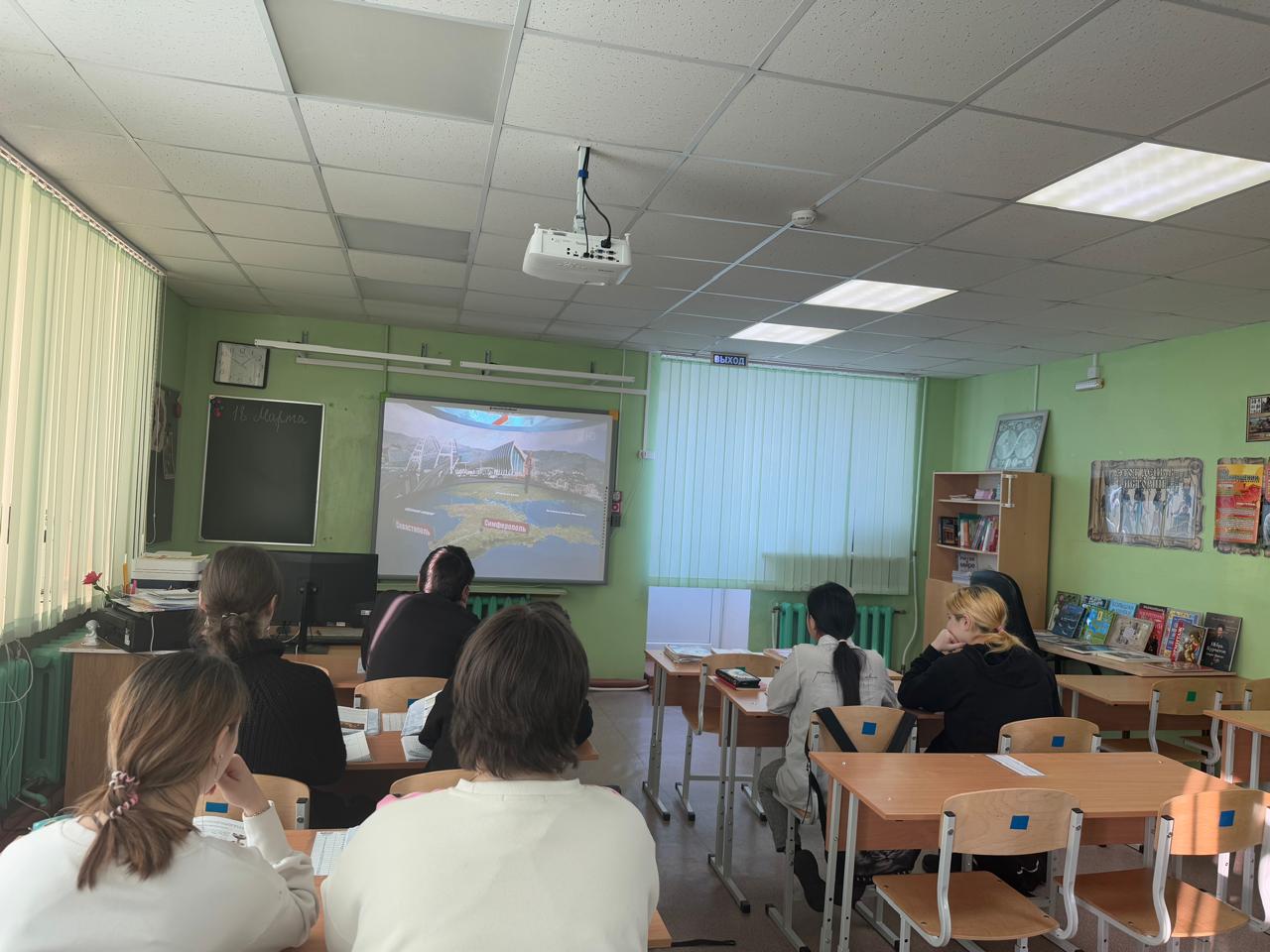 Сегодня исполнилось 11 лет с момента вхождения Республики Крым и города федерального значения Севастополя в состав Российской Федерации. Воссоединение Крыма с Россией — это важное событие новейшей истории нашей страны. На уроках истории, обучающиеся 9 — 11 классов познакомились с лекцией о Крыме, его историческом пути, стратегической роли и современном развитии, используя лекционные материалы Российского общества «Знание». За прошедшие годы Крым сильно изменился: построили мост через Керченский пролив, трассу «Таврида», открыли новый терминал аэропорта в Симферополе и сотни социальных объектов: больницы, школы, детские сады.