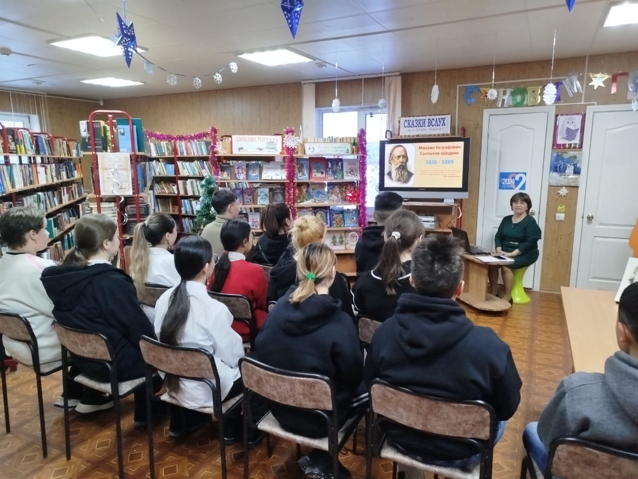 Сегодня, обучающиеся 7 и 11 классов посетили сельскую библиотеку, где приняли участие в Литературном часе «Сказки вслух» посвященном 199-летию со дня рождения великого русского писателя М. Е. Салтыкова-Щедрина. Заведующая библиотекой Волкова Любовь Георгиевна в презентации освятила жизнь и творчество писателя. Ребята в завершении с удовольствием посмотрели советский мультфильм «Премудрый пескарь» по мотивам произведения писателя.