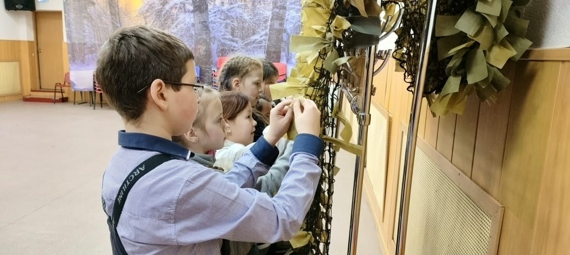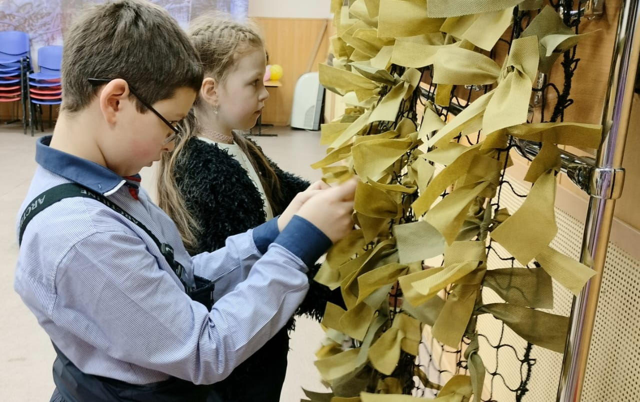 Обучающиеся 2/4 класса решили внести свой вклад в помощь нашим военнослужащим. Ребята плели для участников СВО маскировочные сети. Техника плетения маскировочной сети несложная, но трудоёмкая. Чтобы сделать трёхметровое полотно, потребуется несколько дней. Для них в радость хоть как-то помочь бойцам на передовой. Школьники рассказали, что такие сети помогут военным скрыть от глаз противника технику, инженерные сооружения и места укрытия самих бойцов. Каждый, кто плетёт сети, верит, что они помогут сохранить чью-то жизнь. Они плетут их из простых рыболовных сетей и полосок ткани. Все вместе делают доброе большое дело. В каждую её ячейку вплетается детскими ручками доброта и любовь, поэтому такая защита надёжней любой брони. Дети верят, что маленький вклад приблизит бойцов к победе.