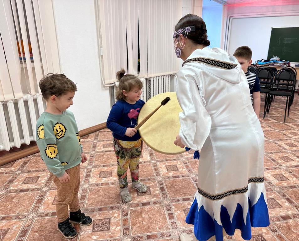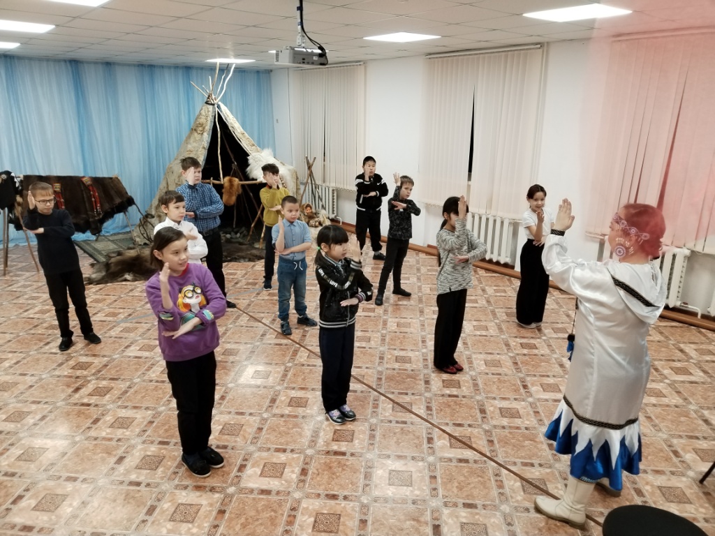 В рамках декады Чукотки 5 декабря в школе прошёл мастер-класс на тему «Основные элементы чукотских и эскимосских танцев» для детей всех возрастов – от детсадовцев до выпускников школы. Провела мероприятие Арина Тарабукина, заведующая национальным отделом Дворца культуры г. Билибино. Перед началом Арина Игоревна рассказала, что история танца уходит в далёкую древность. Уже тогда люди открыли, что оказывается свои мысли, чувства, поступки, можно выражать не словами, а движениями. Поэтому язык танца понятен всем людям, без переводчика. Через движения можно передать образ любого животного, растения, явления природы. В практической части дети узнали значение всех движений, разучили и исполнили под музыкальное сопровождение эскимосский танец «Берингов мост».