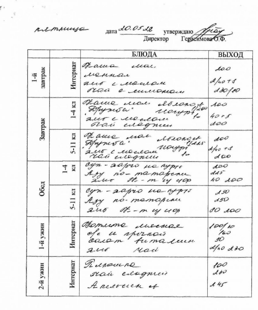 Меню на 20.05.2022