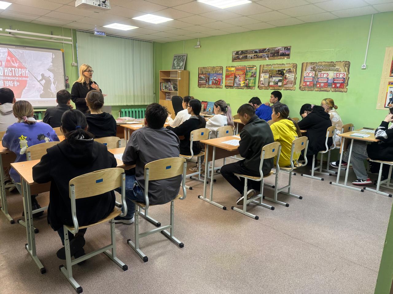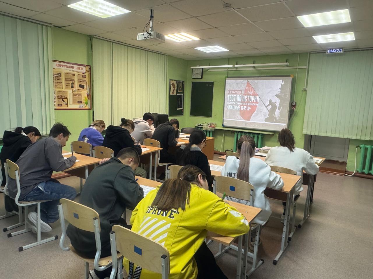Сегодня ученики 7-11 классов и педагоги школы приняли участие в ежегодной Международной акции «Тест по истории Великой Отечественной войны», которая проходит по всей России при поддержке Российского военно-исторического общества. В этом году тест посвящен 80-летию Победы в Великой Отечественной войне. Проведение Акции приурочено к памятной дате – Дню Героев Отечества. Вопросы для Теста подготовил Департамент науки и образования Российского военно-исторического общества. Тест состоит из 40 вопросов, посвященных событиям, Героям и подвигам победного 1945 года, и делится на два уровня – базовый и профильный. Международная акция «Тест по истории Великой Отечественной войны» проводится с 2015 года. Тот, кто не успел проверить свои знания на площадке, может принять участие и онлайн на сайте проекта.