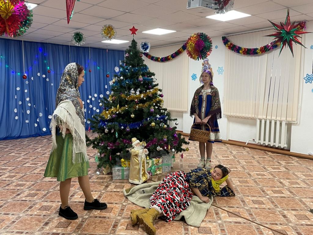 Театрализованная постановка «Морозко» на новый лад, прошла в школе для обучающихся 1-4 классов и 5-11 классов. Баба Яга, Кикимора, Леший, как это обычно бывает, хотели лишить ребят праздника и призывали их сидеть в гаджетах, все пошло бы по их плану, если бы не Дедушка Мороз со своим помощником, символом грядущего года-Зайцем. Настенька на своем примере показала, как важно быть трудолюбивым, честными и отзывчивым человеком, а вот Марфушеньке- душеньке за её лентяйство, награда одна –ремень. Постановка несла не только поучительный характер, но и, конечно же, зарядила ребят новогодним настроением и подарила много позитивных эмоций. Всех, с наступающим Новым годом!