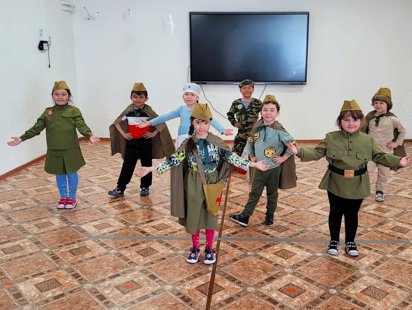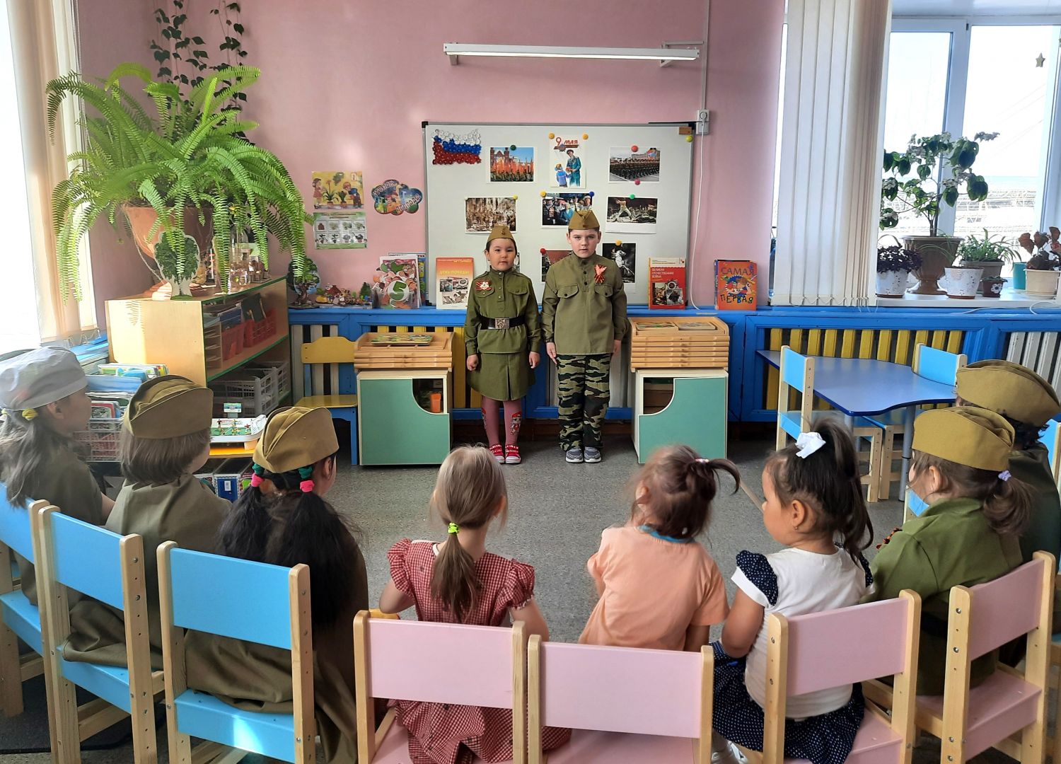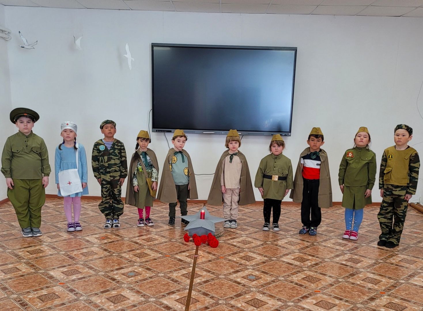В детском саду прошло музыкально — тематическое мероприятие, посвящённое 80-летию со Дня Победы в Великой Отечественной Войне, в котором дети были не просто зрителями, а активными участниками происходящих событий. Педагоги рассказали дошколятам о важнейших исторических моментах, объяснили, что такое День Победы, почему люди так свято к нему относятся, почему это радостный праздник со слезами на глазах, почему нельзя его забывать. Эта страшная и жестокая война стала для нашего поколения уже далёкой историей. Но наша задача — научить детей помнить мужество и героизм людей, защищавших наше Отечество, гордиться их стойкостью и подвигами советских солдат и офицеров, а также самоотверженностью тружеников тыла — женщин, стариков, детей. Без уважения к истории своей Родины невозможно воспитать у детей чувства собственного достоинства и уверенности в себе, сопереживания и милосердия к чужой боли. Нельзя, чтобы наши дети забывали об этом.