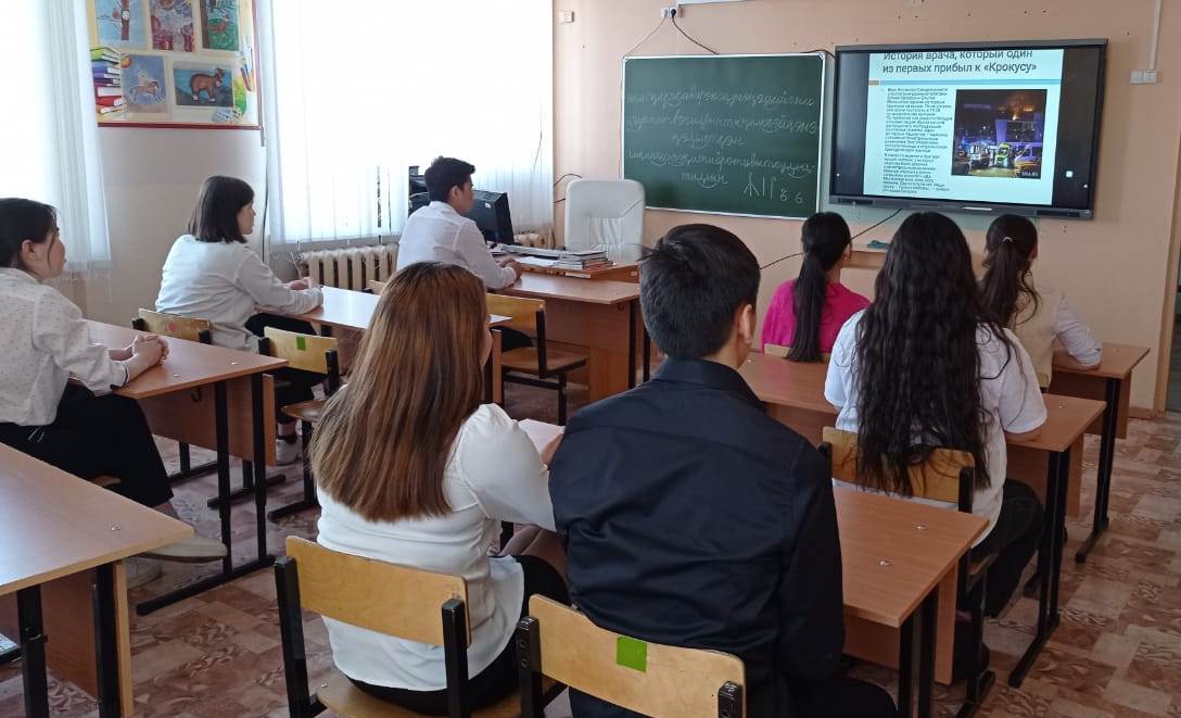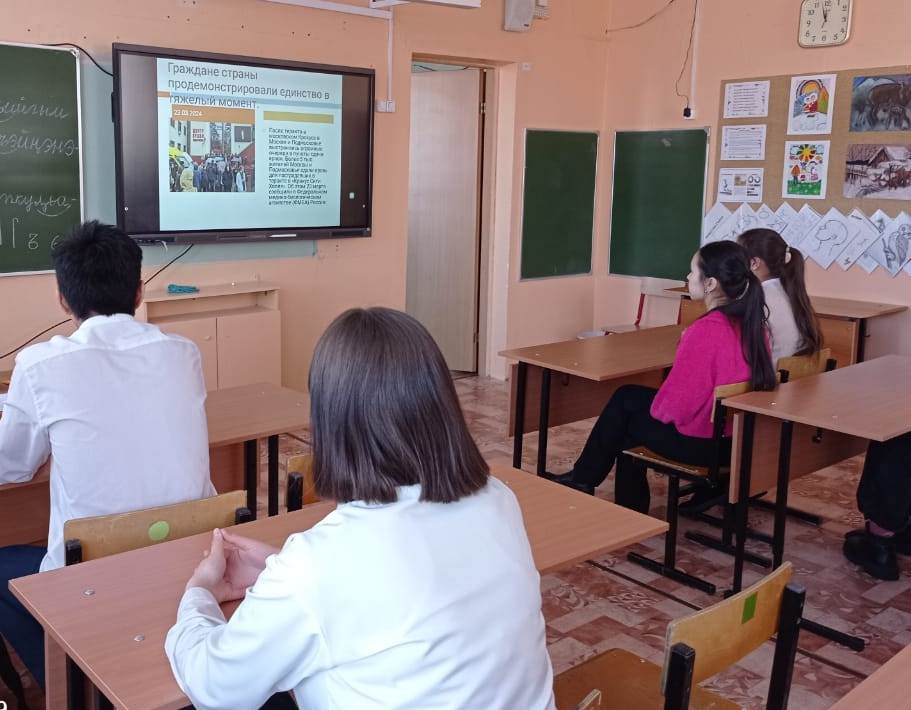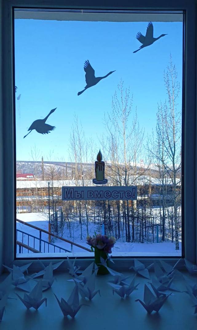 Обучающиеся школы приняли участие в акции   «Окна памяти» в знак скорби о жертвах террористического акта, который произошел в «Крокус Сити Холле» 22 марта 2024 года и разместили на окнах бумажных журавлей, вырезанных собственными руками. Также в этот день в школе прошли «Разговоры о важном» на тему  «Единство народов России». Ребятам рассказали, что у терроризма нет национальности, показали видео с школьниками-героями, выводившими людей из здания, научили правилам поведения при теракте и дыхательным техникам, много говорили о единстве и фейковых новостях.