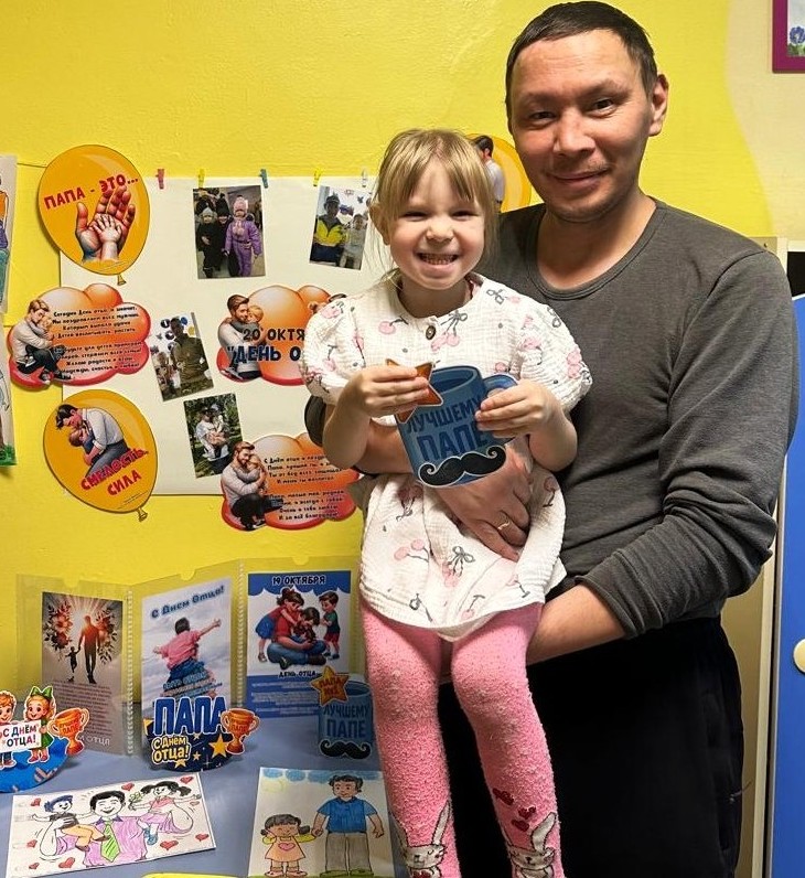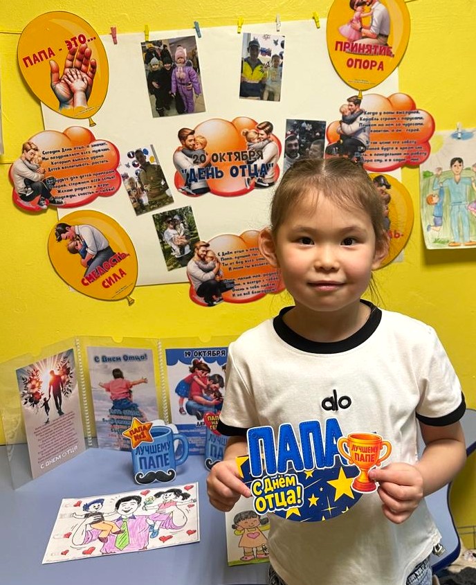 В соответствии с Указом Президента РФ от 04.10.2021 г. № 573 «О Дне отца»  в России появился новый праздник – «День отца», который ежегодно отмечается в третье воскресенье октября. Праздник направлен на повышение значимости отцовства в воспитании детей. В преддверии празднования этого дня в разновозрастной группе детского сада прошли мероприятия, посвящённые этому празднику —  проведено тематическое занятие, на котором дети рассказывали о своих папах, оформлена фотовыставка, созданы поздравительные открытки и стенгазета  для любимых пап.    Быть хорошим отцом — самая ответственная и нужная работа в жизни мужчины. Стать примером для сына и добрым волшебником для дочери. Научить, рассказать, защитить, объяснить и сделать всё это с любовью и терпением — такое может только папа.