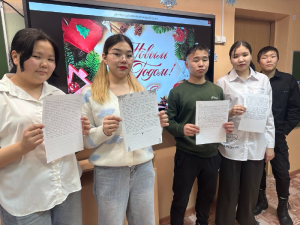 19.12.2025 обучающиеся  10, 11 классов приняли участие в патриотической акции  «Камуфляж Победы». Ребята  в письмах поздравили с наступающим Новым годом, желали бойцам ангела-хранителя, крепкого здоровья, терпения, скорейшего возвращения домой. Писали, что ждут и гордятся ими. Такие письма — больше, чем просто весточка из дома. Эти письма напоминают бойцам на СВО, что на малой родине их ждут, ценят и верят в них.