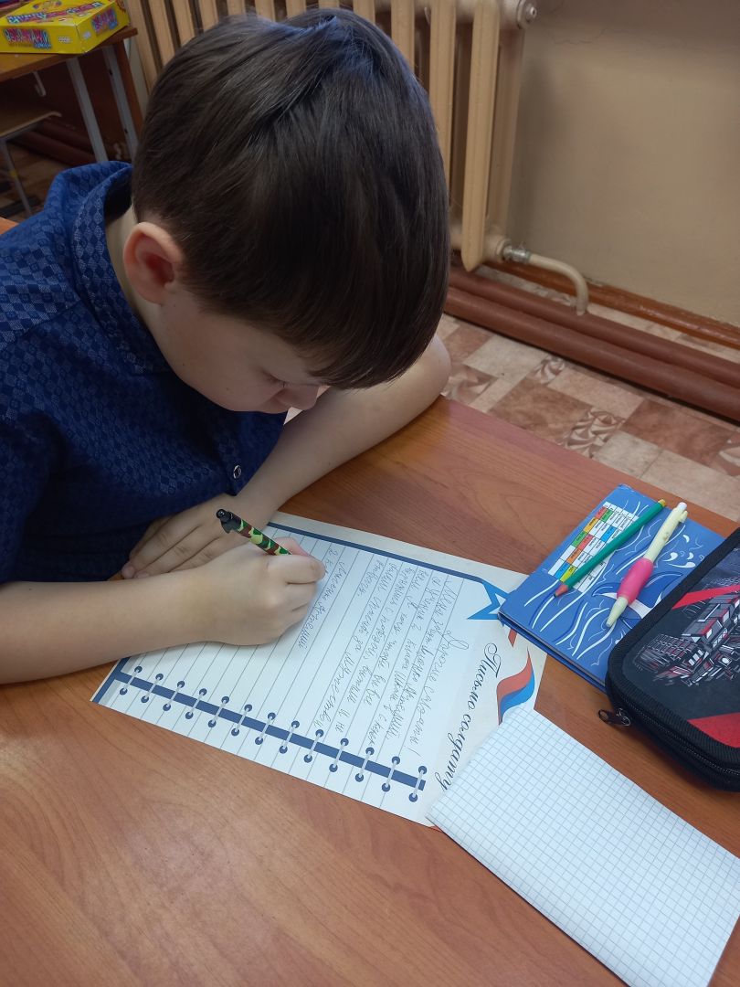 В рамках мероприятий, посвященных месячнику военно-патриотического воспитания обучающиеся начальных классов приняли участие в акции «Письмо солдату». В своих письмах ребята выразили слова поддержки и благодарности своим родным и близким, знакомым солдатам, участвующим в Специальной военной операции.