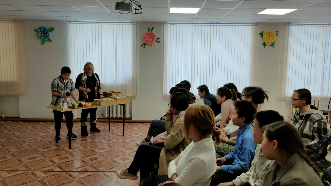 В рамках пропаганды здорового питания, в интернате было проведено мероприятие «Принципы здорового питания». Воспитанники повторили правила приема пищи, полезные свойства овощей и фруктов. Ребята пытались определить овощи и фрукты по запаху, составляли компоненты овощных салатов и представили рекламу полезных продуктов.
