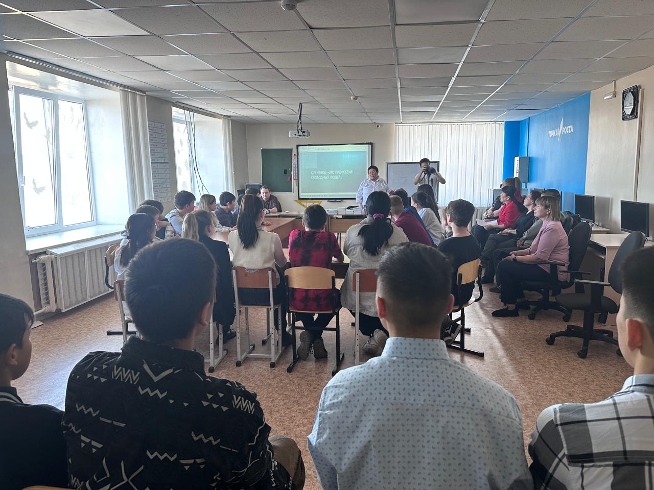 22.05.25 в школе прошло профориентационное мероприятие о профессии «Оленевод». Данное мероприятие своим выступлением на тему «Оленевод-профессия свободных людей» открыла учитель чукотского языка Тильмина М.В.. Заместитель главы администрации по КМНЧ Серегина Н.В. рассказала ребятам об истории оленеводства Билибинского района, главный зоотехник МП СХП БМР «Островное» Энмытагина А.С. рассказала об особенностях своей профессии в рамках оленеводства. Об условиях работы и проживания в тундре рассказал оленевод Слепцов М.В.. Обучающиеся с большим удовольствием прослушали выступления гостей. Хотелось бы, что бы данные встречи проходили чаще.