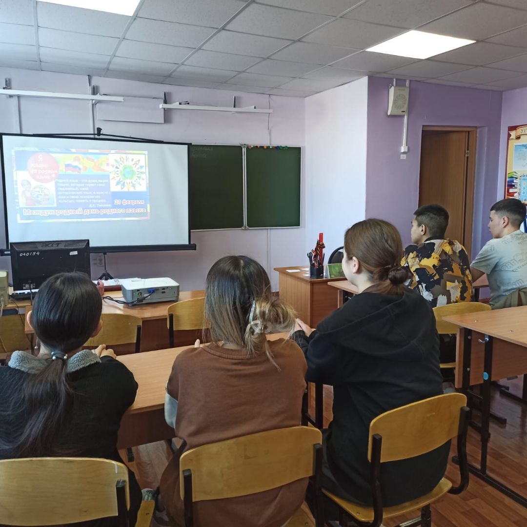 21 февраля во всем мире отмечается Международный День родного языка. В рамках празднования даты была проведена увлекательная игра — викторина «Путешествие в мир родного языка» для учащихся 5-11 классов. В начале мероприятия обучающиеся узнали об истории происхождения праздника, посмотрели видеоролик о родном языке. Выполняя задания, учащиеся показали хорошие знания. Викторина прошла живо и эмоционально, в дружеской атмосфере. Подводя итог, ребята пришли к выводу, что мы должны любить свой родной язык и гордиться им. Родной язык – это одна из главных ценностей человечества.