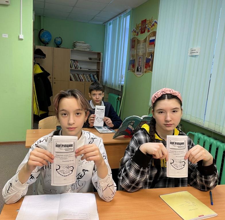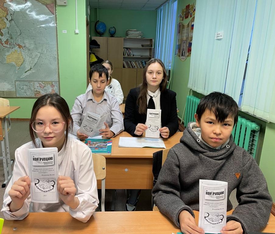 В рамках Международного дня борьбы с коррупцией с обучающимися школы были проведены уроки обществознания на тему «Тайна слова коррупция», в целях углубления теоретического уровня познания учащимися такого явления как коррупция, воспитание активной жизненной позиции. Учитель истории и обществознания вместе с учащимися рассматривали отдельные возможные случаи коррупции, обсуждали меры по минимизации проявлений коррупции, говорили о причине коррупции, видах и формах. В конце урока ребята решили кроссворд на тему «Коррупция» и получили буклеты с информацией. В настоящее время немало внимания уделяется урокам антикоррупционной направленности.