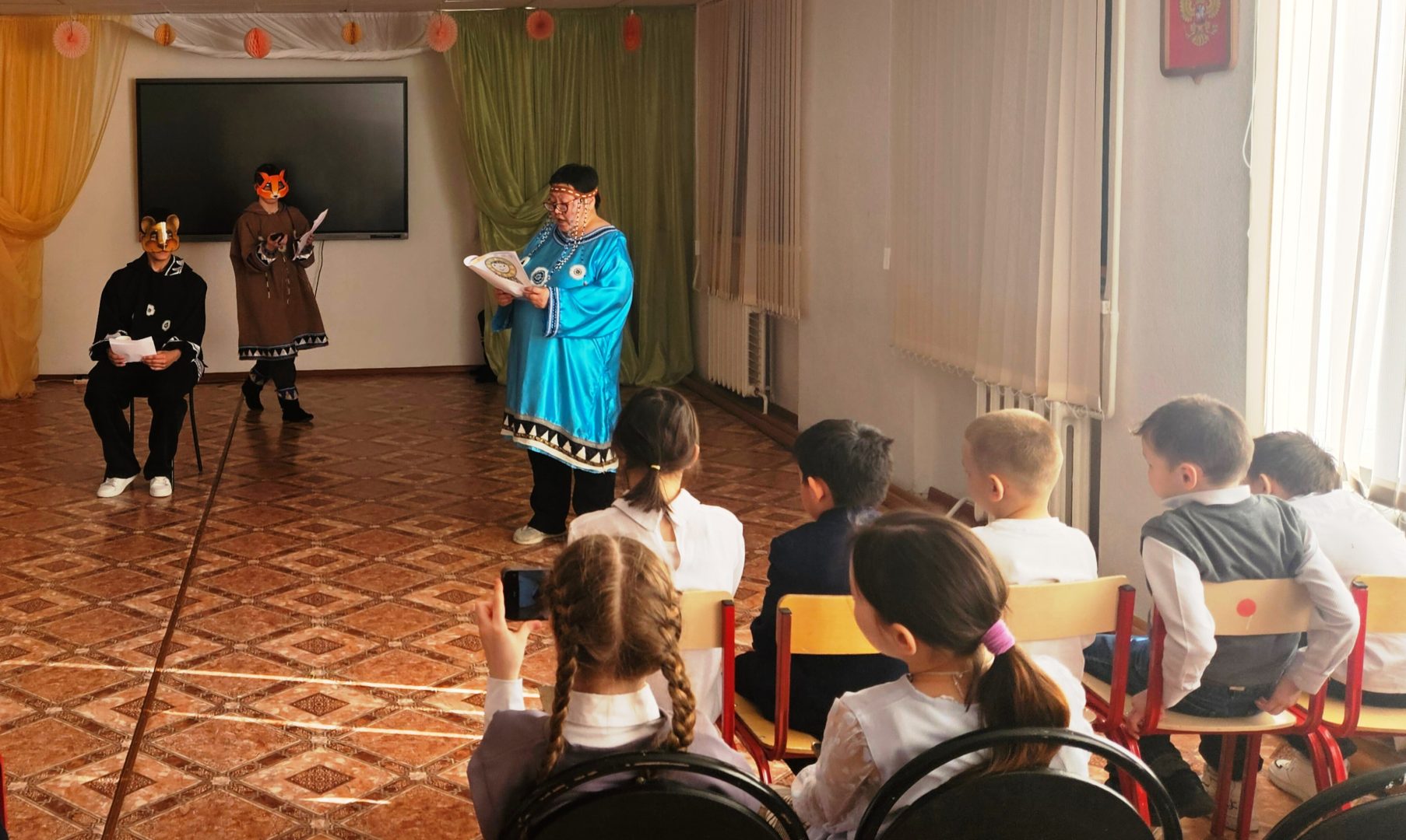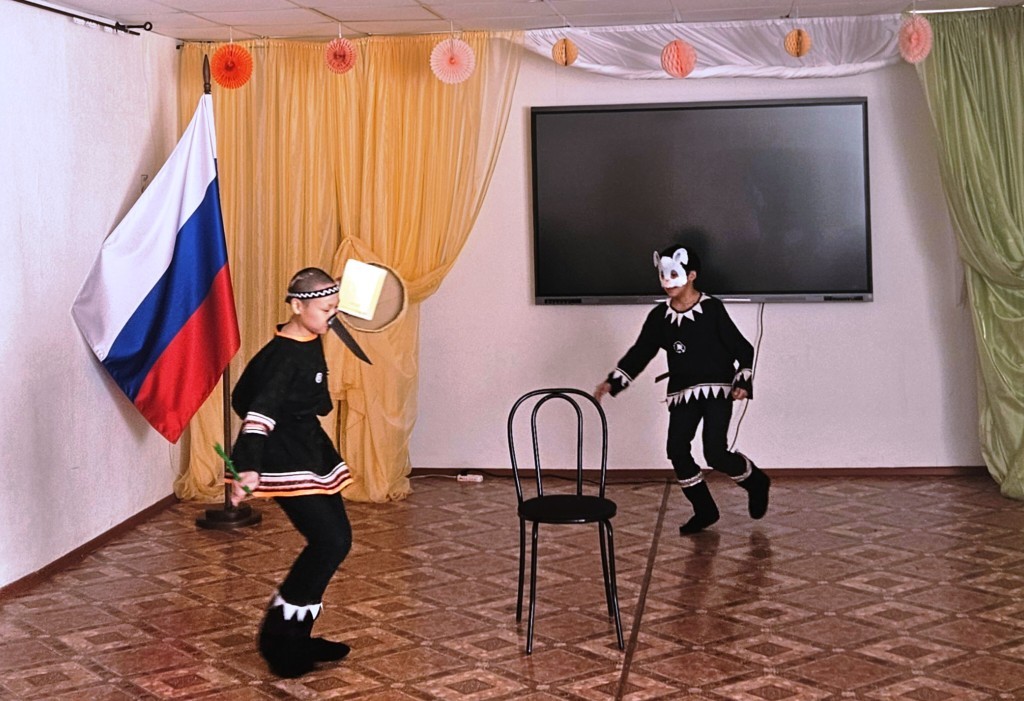 В музыкальном зале МБОУ «Школа-интернат с. Кепервеем» состоялось театрализованное представление чукотской сказки «Жадный медведь» для учеников начальной школы. Учащиеся кружка «Языковое гнездо» продемонстрировали сказку на чукотском и русском языках. Известно, что бурые медведи делят территорию, эту особенность взяли за основу сказки: «Медведь считается хозяином тундры. Он всегда справедлив и рассудителен, но жил в Илирнейской тундре очень жадный медведь….».
